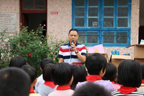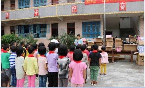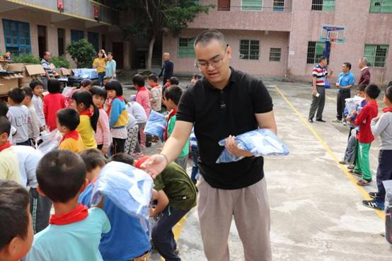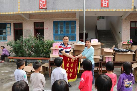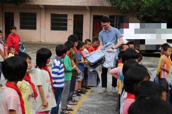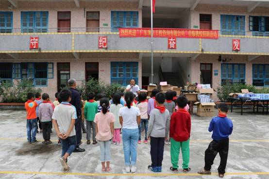 早上九点,九游online(中国)带着一如既往的初心从公司楼下出发, 从广州前往肇庆广宁县石咀镇。经过连续不断的蜿蜒山路,三个多小时后九游online(中国)到达了石咀镇。石咀镇,这个九游online(中国)来了三年的地方,感觉是那么的熟悉,从镇上到周围的村庄都能看到小学生的身影。为了不打扰学生休息,九游online(中国)选择下午14:00到达建中小学。此时已经有学生陆续返校,见九游online(中国)到来,学生们打开了校门,不约而同喊着“欢迎欢迎”,脸上洋溢着欢欣的笑容。建中村委、建中小学的校长、老师以石咀镇中心小学校长及副校长及学生们已集中等候,公司购买的打印机、书包、校服、体育用品、学习文具以及图书均摆放在教室门口的红旗下。根据学校的安排,现场举办了简单而有意义的捐赠仪式,为感谢公司的捐助,校长还赠送了 “大爱无疆,捐资助学” 的锦旗。