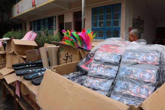 公司捐赠的校服、笔记本电脑、学习用品及乒乓球桌